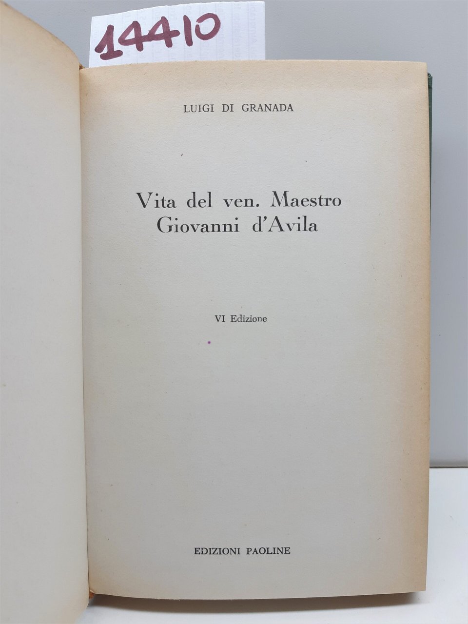 Luigi di Granada Vita del Ven. maestro Giovanni d'Avila 6° ed. Paoline 1962