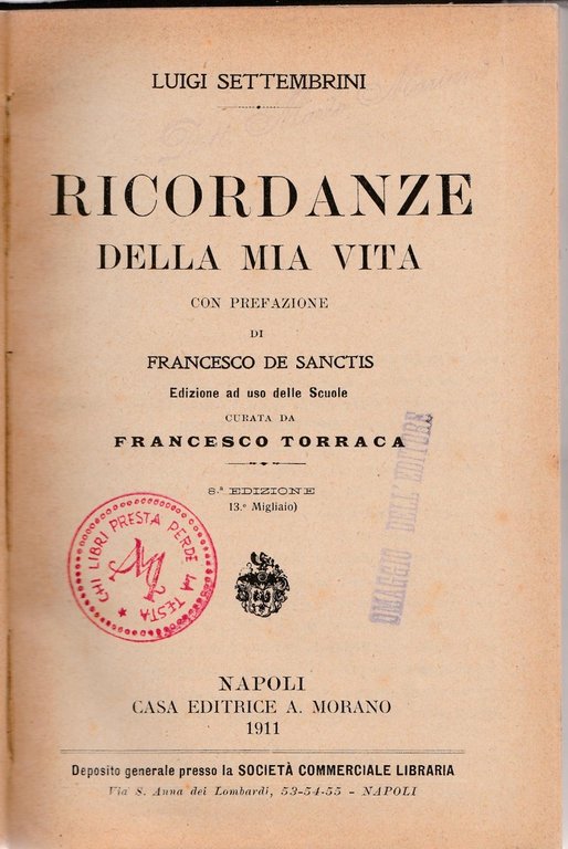 Luigi Settembrini Ricordanze Della Mia Vita 8∞ Edizione Napoli 1911 6263