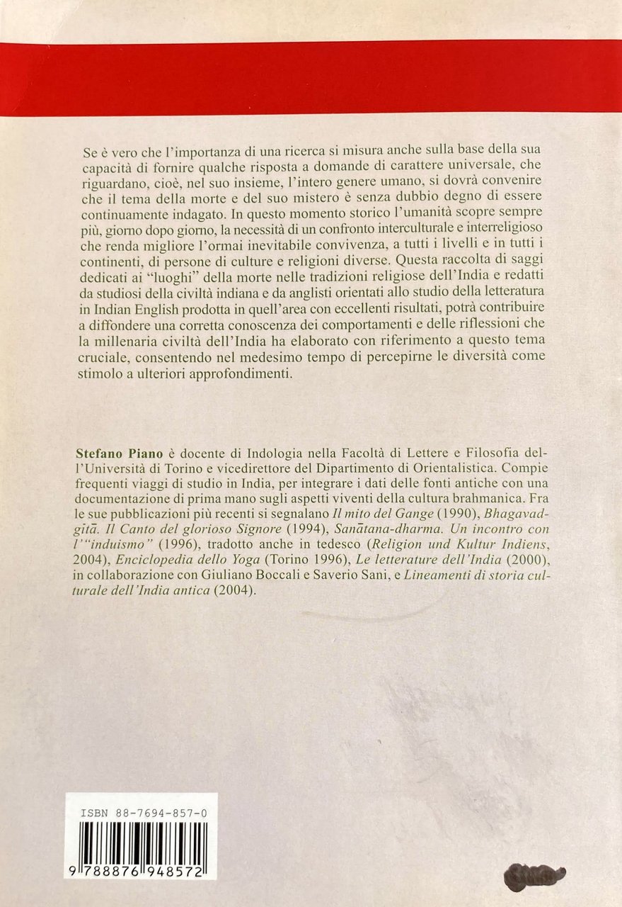 Se è vero che l'importanza di una ricerca si misura anche sulla base della sua capacità di fornire qualche risposta a domande di carattere universale, che riguardano, cioè, nel suo insieme, l'intero genere umano, si dovrà convenire che il tema della morte e del suo mistero è senza dubbio degno di essere continuamente indagato. In questo momento storico l'umanità scopre sempre più, giorno dopo giorno, la necessità di un confronto interculturale e interreligioso che renda migliore l'ormai inevitabile convivenza, a tutti i livelli e in tutti i continenti, di persone di culture e religioni diverse. Questa raccolta di saggi dedicati ai "luoghi" della morte nelle tradizioni religiose dell'India e redatti da studiosi della civiltà indiana e da anglisti orientati allo studio della letteratura in Indian English prodotta in quell'area con eccellenti risultati, potrà contribuire a diffondere una corretta conoscenza dei comportamenti e delle riflessioni che la millenaria civiltà dell'India ha elaborato con riferimento a questo tema cruciale, consentendo nel medesimo tempo di percepirne le diversità come stimolo a ulteriori approfondimenti.