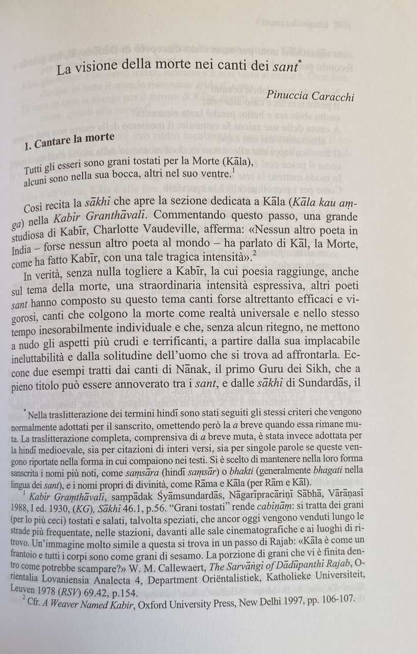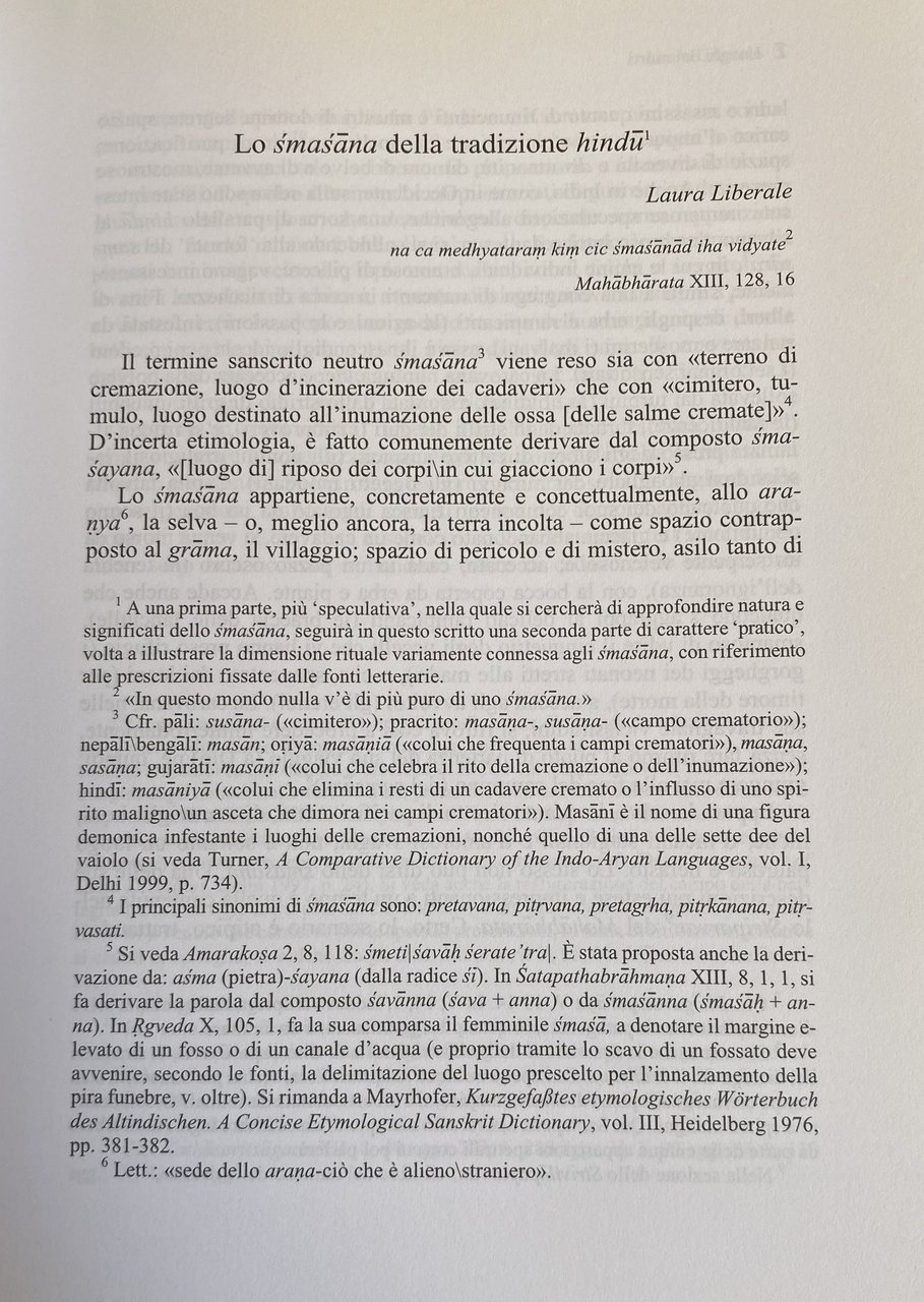 Soggetti: Indologia Filosofia Orientalistica Viaggio India Fonti storiche antiche Cultura brahmanica Mitologia Gange Bhagavadgita Sanatana-dharma Induismo Kultur Indiens Yoga Letterature Storia culturale Hindu Masculinities across Ages Harmattan Alka Saraogi Anita Nair Smasana Tradizione Città Sante Benares Mahasmasana Simbologia Luce Kasikhanda Skandapurana Riti funebri indiani Morte Lingayata Karnataka Ascesa al cielo Visioni Oltretomba Sanscrite Mahabharata Gupta Testi antichi Sanscrito Canti Santoni Spazio Antim Aranya Nirmal Varma Rituali Memoria Raj Ottocento Non-morti Varanasi Himalaya Commemorazione Reincarnazione Religioni orientali Tradizioni religiose Balze funerarie Ghats Fiumi Cremazioni Luoghi sacri Ceneri Cerimonie commemorativi Metafisica Ciclo Yoni Transizione Esistenza Manikarnika Yama-duta Messaggeri Raya Rao Siddhi Poteri Levitazione Corpo Discipline mistiche Mistica Moksa Saggi Raccolte Libri rari fuori catalogo Collezionismo Anugamana Sati Panikkar Pandey Olbenberg Bibliografia Riferimento Consultazione Vedas Cosmogonia Parry Louis Renou Sharma Herrenschmidt Kinsley Dumont Doniger Mircea Eliade Gian Giuseppe Filippi Raniero Gnoli Jan Gonda Heesterman Emil Abegg Veena Das Bonazzoli Caland Piantelli Varna Caracchi Danielou Immortalità Libertà Miti Pelissero Sikh Hindi Canto glorioso Buddhismo Buddha Sutra Loto Sant Innato Assoluto Congenito Natura divina Upanisad Atman Gagana Nath Basava Kannada Bradford Desai Ishvaran Tiziana Ripepi Sakhi Kala Devinamastotra Inni puranici Dea Atharvaveda Testo sapienziale Formule magiche Principi cosmogonici Specchi Whitney-Lanman Orlandi-Sani Amuleti Sanatana Dharma Tantra Samkhya Vedanta Purana Sacrificio Yudhisthira Visnu Appayya Arjuna Asceti Bhagavad-gita Bhajana Bhakta Brahmani Cadavere Crematori Defunti Devoti Dharmasastra Discendenti Draupadi Guru Impurità Jagadguru Jangama Kabir Kipling Kuru Lingayat Mantra Motilal Banarsidass Mrtyu Naciketa New Delhi Kane Pandu Ramananda Teschio Vacca Carne On the Ganga Ghat Indology Orientalist Philosophy Travel Voyage Journey Ancient historical sources Brahmanic culture Mythology Ganges Hinduism Literatures Cultural history Tradition Holy cities Symbolism Light Indian funeral rites Death Ascent to heaven Visions Afterlife Sanskrit Texts Chants Space Rituals Memory Nineteenth century Undead Commemoration Reincarnation Eastern religions Religious traditions Ledges Rivers Cremations Sacred places Ashes Commemorative ceremonies Metaphysics Cycle Transition Existence Messengers Powers Levitation Body Mystical diciplines Mysticism Essays Collections Rare books out of print Collectibles Bibliography Reference Consultation Cosmogony Immortality Freedom Myths Glorious song Buddhism Lotus Innate Absolute Congenital Divine nature Puranic hymns Goddess Wisdom text Magic formulas Cosmogonic principles Mirrors Sacrifice Corpse Crematoriums Deceased Devotees Descendants Impurity Skull Cow Meat