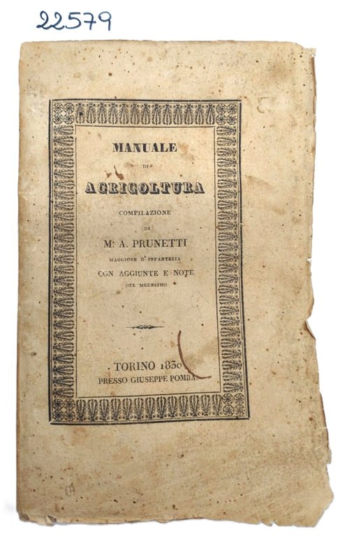 M. A. Brunetti Manuale di agricoltura 1830 Torino Giuseppe Pomba