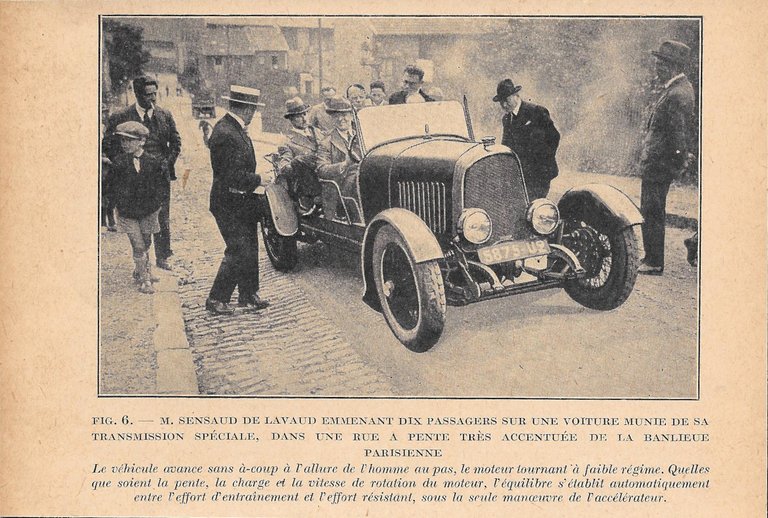 M. Sensaud de Lavaud Emmenant dix passagers sur une voiture munie de sa trasmission spéciale - Immagine 1929