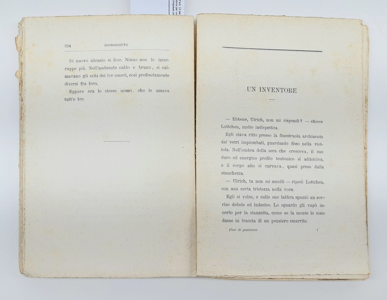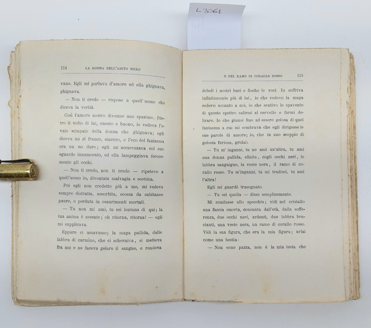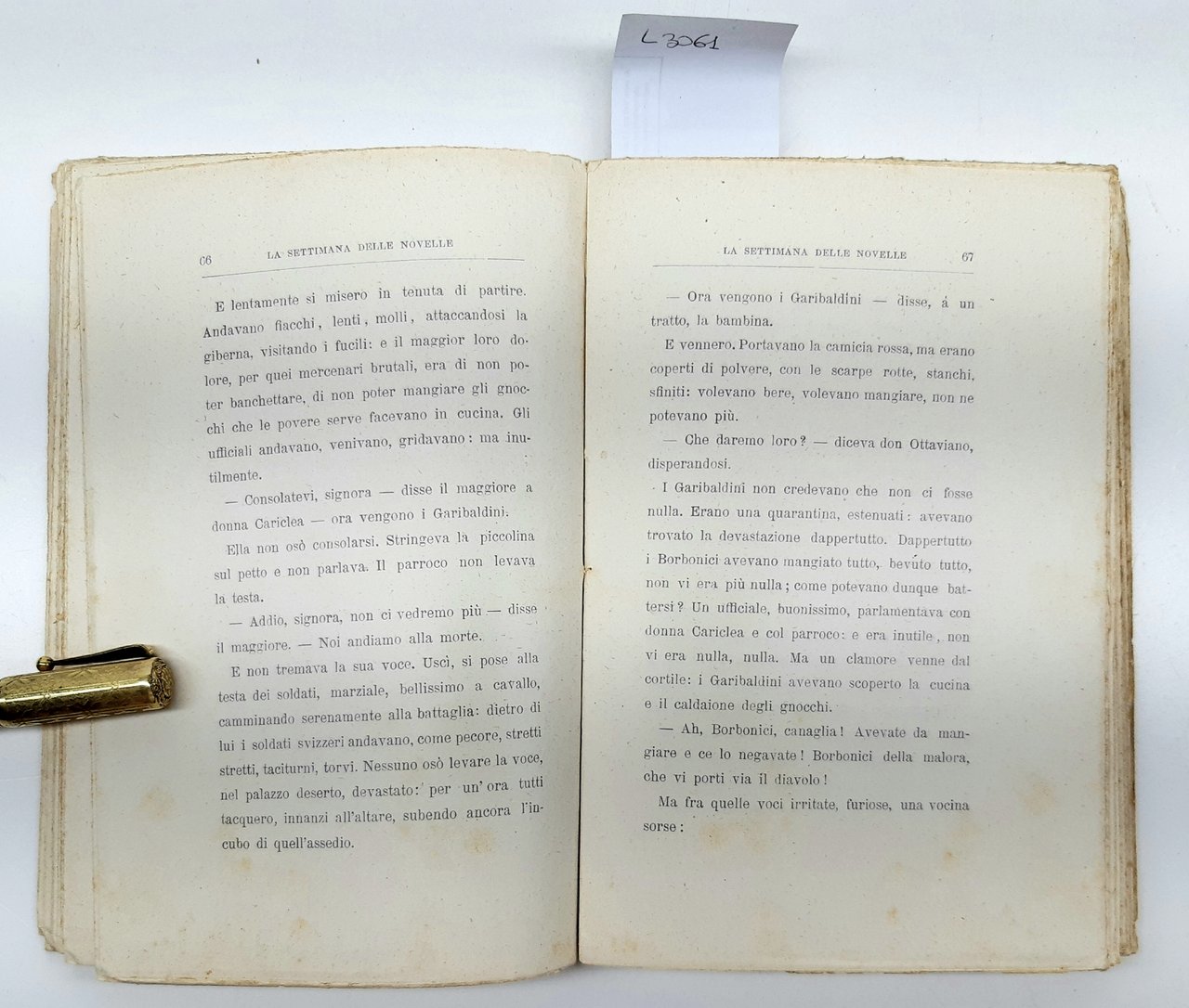 legatura morbida editoriale con pieghe e piccoli strappi ai margini, bruniture e fioriture diffuse ai piatti e al dorso, dorso brunito con abrasioni ai margini, tagli irregolari bruniti con fioriture, piccoli strappi ai margini dei piatti, firma di possesso al piatto anteriore antiporta e frontespizio, timbro di catalogazione all'antiporta e timbro della libreria Fioriture diffuse alle pagine interne che non impediscono la lettura, legatura molto allentata, numero pagine 278 dimensioni cm 19,5 * 13