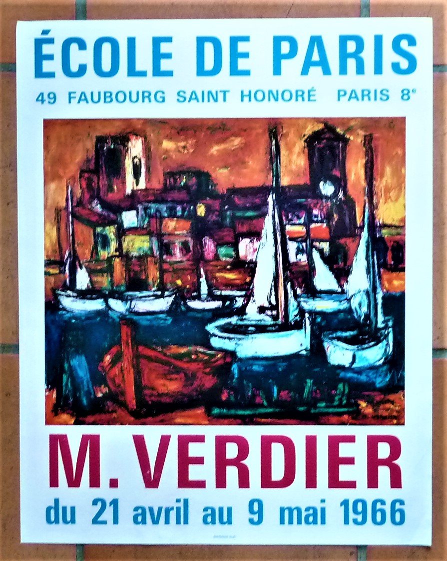 M. Verdier. Une affiche éditée à l'occasion de l'exposition à l"Ecole de Paris" du 21 avril au 9 mai 1966.