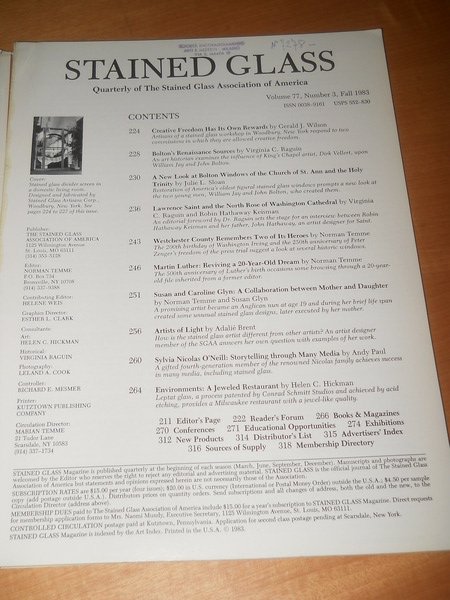 magazine STAINED GLASS vol. 78 n. 3 fall 1983