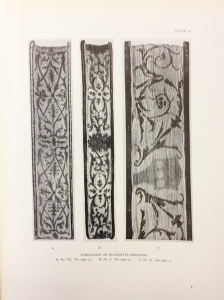 In-8 gr., tela editoriale, pp. XVI,178, con 6 tavole a colori protette da velina con didascalia e 58 tavole in bianco e nero, fuori testo che riproducono splendidi esempi di legature del XVI secolo. Ben conservato.