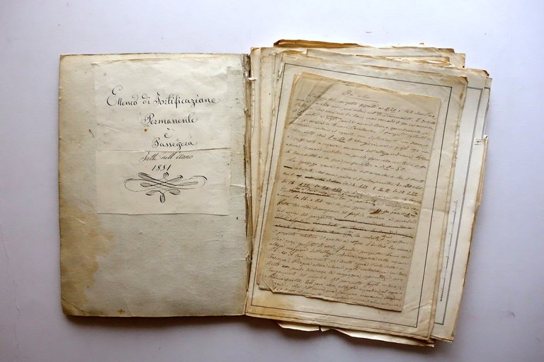 Manoscritto Elenco di Fortificazione Permanente e Passeggera 1851 Fortificazioni