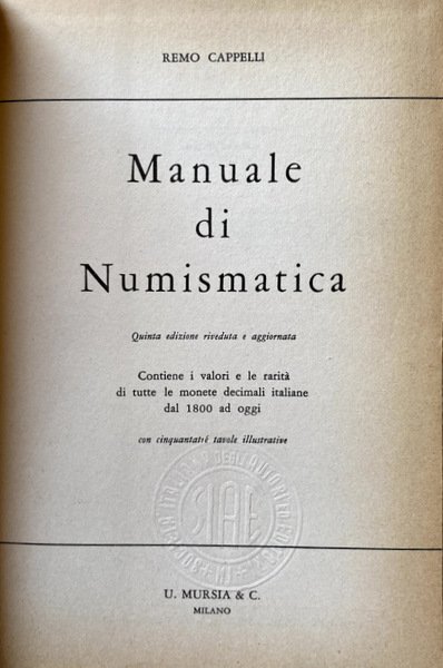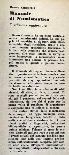 MANUALE DI NUMISMATICA. CONTIENE I VALORI E LE RARITÀ DI TUTTE LE MONETE ITALIANE DAL 1800 AD OGGI. | Libros antiguos y modernos | Remo Cappelli