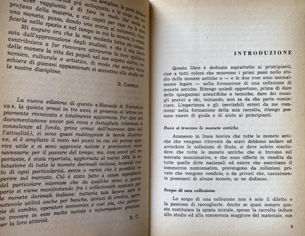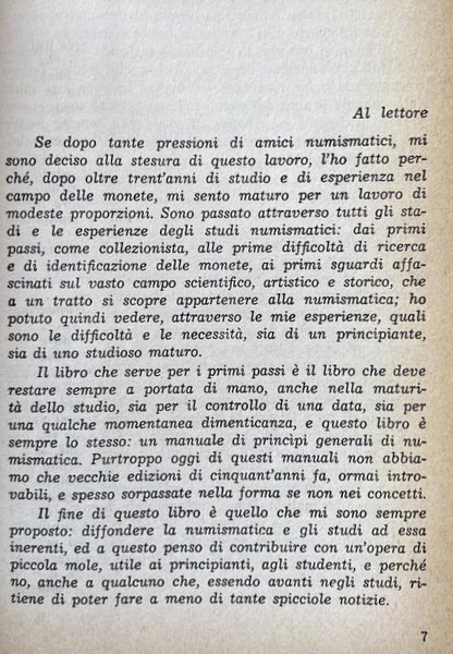 La numismatica è una disciplina in cui si intrecciano storia, economia, arte, tecnica e una moneta può raccontare la vita di un popolo. Questo manuale, utile all'esperto ma indispensabile a chi si avvicina per la prima volta al collezionismo o anche solo allo studio della moneta, è un vero e proprio classico della materia. Dalla storia della monetazione dell'antichità greca, romana e bizantina, dell'età moderna e contemporanea, alle tabelle fotografiche per risolvere problemi grafici o linguistici, agli elenchi di tutte le monete decimali italiane rare e comuni. E tanti consigli utili per il collezionista neofita da come «non pulire» le monete a come evitare le contraffazioni.