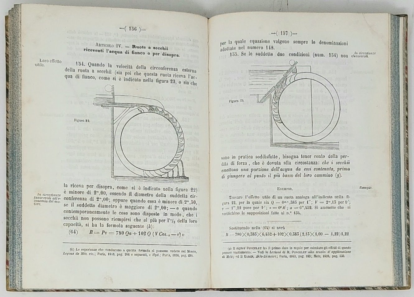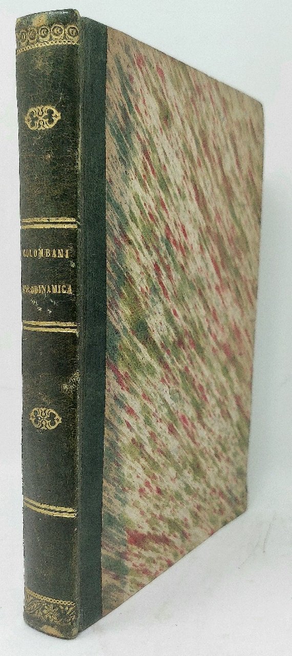 >in-8, pp.(4), 291, leg. del tempo m. pelle, tit. e fregi oro al dorso. Con una tabella a stampa ed una tav. di fig. inc. e ripieg. f. t. Terza edizione (prima 1842) di questo curioso manuale dedicato allo studio delle bocche per estrarre acqua, all'irrigazione del canali e fiumi, ai tubi e all'uso dell'acqua come forza motrice. Ottimo esemplare.