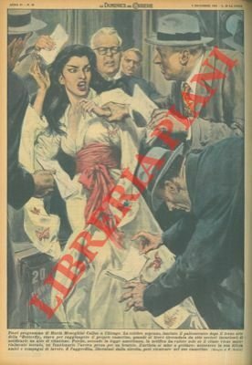 Maria Meneghini circondata da otto uscieri incaricati di notificarle un atto di citazione. Accorsero in sua difesa amici e compagni di lavoro e l'aggredita, liberatasi dalla stretta di uno, poté rientrare nel suo camerino.