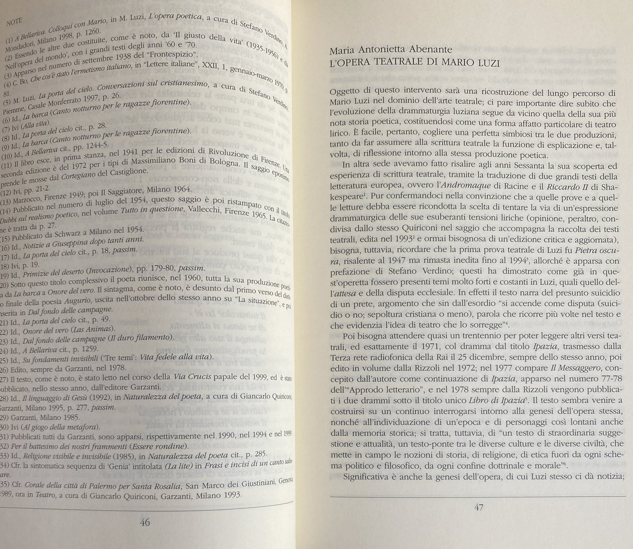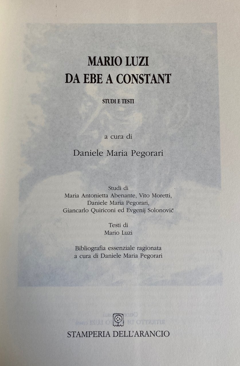 MARIO LUZI DA EBE A CONSTANT: STUDI E TESTI