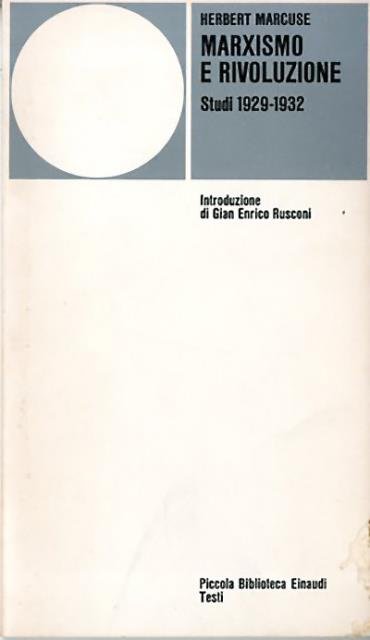 XX, 116 p. ; 18 x 11 cm. Piccola biblioteca Einaudi. Serie Testi, 3. Apparsi tra il 1929 e il 1932, i tre saggi di Herbert Marcuse raccolti in questo volume appartengono a quella fase dello sviluppo del loro autore particolarmente aperta ai tipici motivi della cultura filosofica e sociologia della Germania di Weimar, all vigilia della presa del potere da parte del nazismo. Traduzione di Anna Solmi. Introduzione di Gian Enrico Rusconi. Brossura editoriale, coperta in cartoncino flessibile plastificato. Codice libreria 9450.