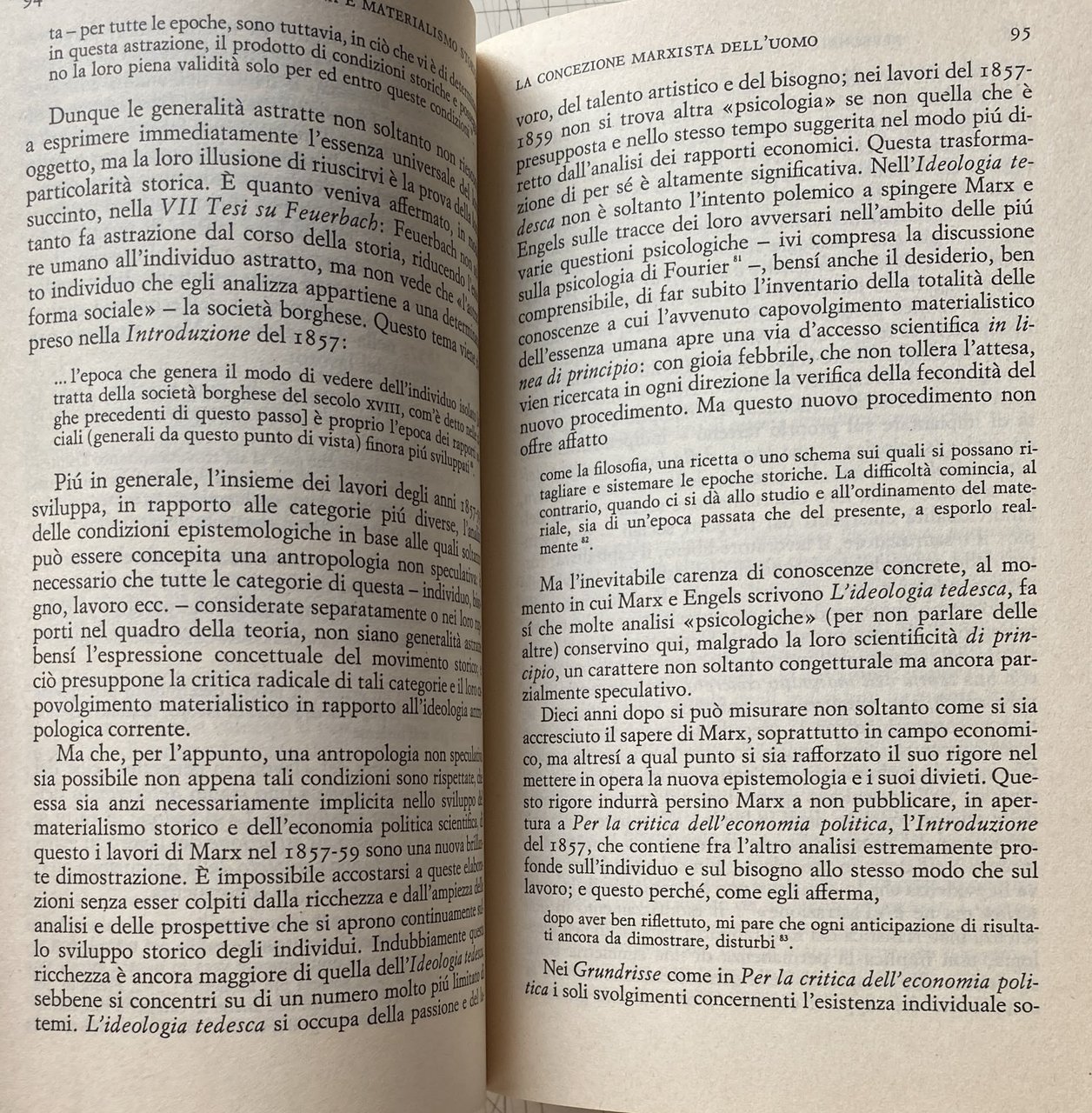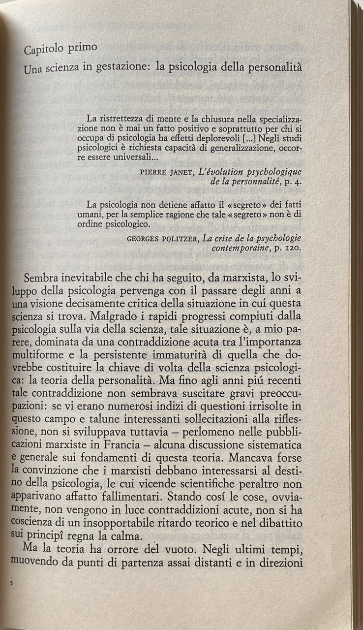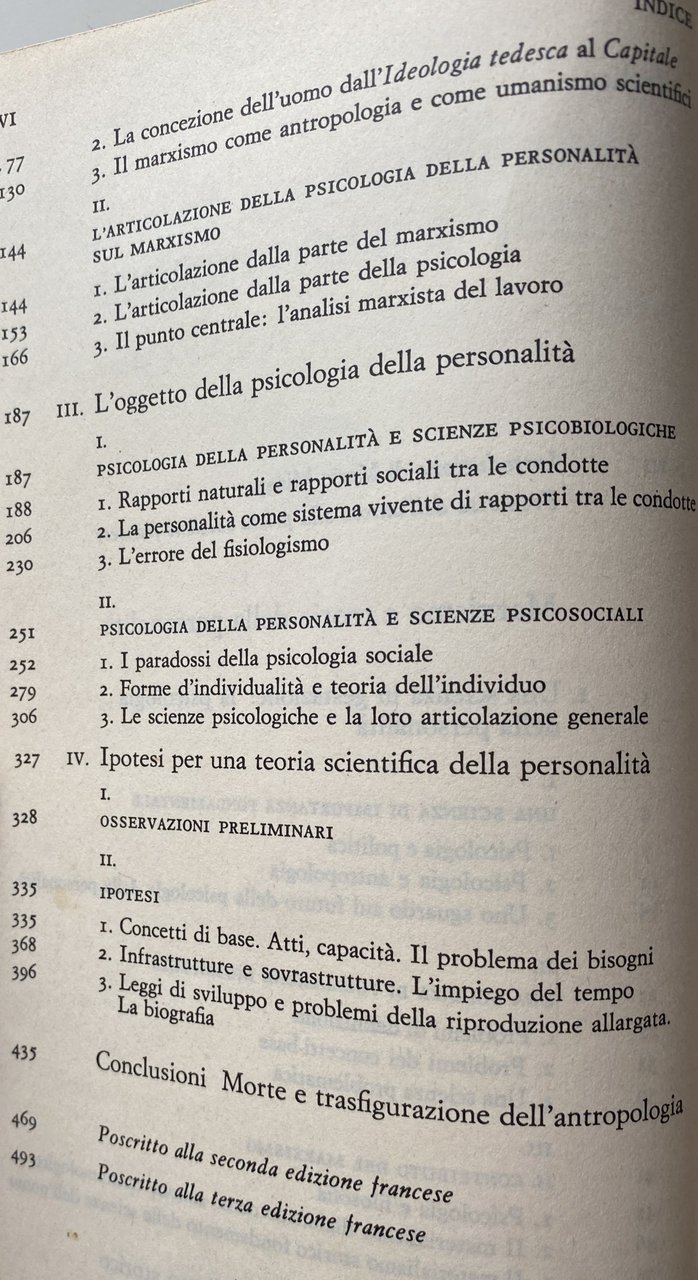 Soggetti: Ideologie politiche Libri rari fuori catalogo Trattati Psicologia Marxismo Ideologia tedesca Engels Materialismo storico dialettico Dialettica Teorie Scienze psicologiche Personalità Borghesia Umanesimo Marxism and the Theory of Human Personality Saggi filosofici Strutturalismo Maurice Godelier Natura Structuralisme Dialectique Théorie psychanalytique Psicanalisi Teoria psicanalitica Marxismus Theorie der Persönlichkeit Catherine Backès-Clément Pierre Bruno Critica marxista Nouvelle critique Il Capitale Louis Althusser Antiumanismo Esistenzialismo Attività psichica Lenin Pavlov Politzer Janet Potere Politica Intellettuali Collezionismo Società Lotta di classe Pour Concezione Rivoluzione Stato Socialismo scientifico Durkheim Sociologia Analisi Feuerbach Scienza Umanismo Lavoro Antropologia Fisiologismo Oggetto Concetti Sociale Bisogni Bibliografia Riferimento Poscritto Sovrastrutture Definizione Epistemologia 1844 Manoscritti Base biologica Capitalismo Umano Concreto Individualità Contraddizioni Differenziale Divisione Partito comunista francese Schema omeostatico Essenza umana Processi mentali Ipotesi Illusione Introspettivo Metafisica Lawrence Wishart Economia Problema Vita reale Relazioni Rapporti di produzione Merce Feticismo Roger Garaudy Comportamento Storia Uomo Mentale Plusvalore Salariato Salari Giovane Marx Franco Basaglia Anni Settanta Hegel Les Temps Modernes Lévi-Strauss Kossakowski Germania Europa Fraisse Piaget Educazione Pedagogia Freud Adam Schaff Fromm Francia Maspero Psichismo Borghese Political ideologies Rare books out of print Treatises Psychology Marxism German ideology Dialectical historical materialism Dialectics Theories Psychological sciences Personality Bourgeoisie Humanism Philosophical essays Structuralism Nature Psychoanalysis Psychoanalytic theory Marxist criticism Capital Anti-humanism Existentialism Psychic activity Power Politics Intellectuals Collectibles Society Class struggle Conception Revolution State Scientific socialism Sociology Analysis Feuerbach Science Humanism Work Anthropology Physiologism Object Concepts Social Needs Bibliography Reference Postscript Superstructures Definition Epistemology Manuscripts Biological basis Capitalism Human Concrete Individuality Contradictions Differential Division French Communist Party Homeostatic scheme Human essence Mental processes Hypothesis Illusion Introspective Metaphysics Economy Problem Real life Relations of production Commodity Fetishism Behavior History Man Surplus value Wage earner Wages Young Seventies Germany Europe Education Pedagogy France Bourgeois Psychism