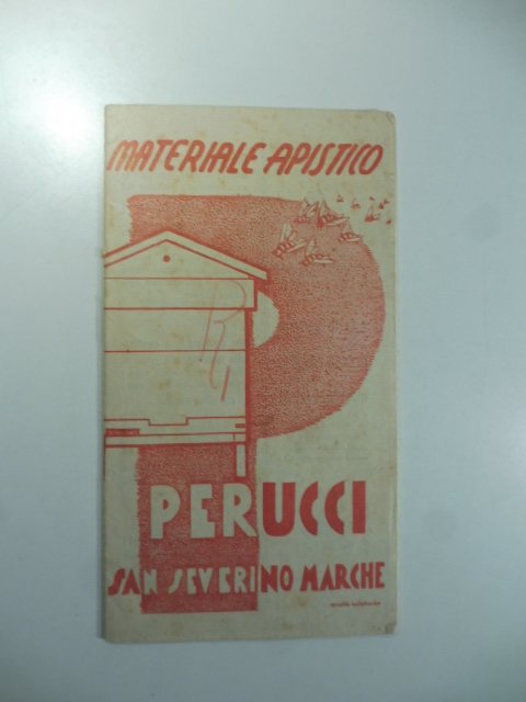 In 8 (cm 10,5 x 19,5), pp. 12 ripiegate all'interno della brochure. Brossura editoriale. Qualche sottolineatura con matita rossa nel testo. Indirizzo di spedizione manoscritto al piatto anteriore. Lieve foro della carta del piatto posteriore. Brochure pubblicitaria con tabelle del materiale apistico venduto da questa ditta di San Severino Marche. Non datato ma 1930 circa.