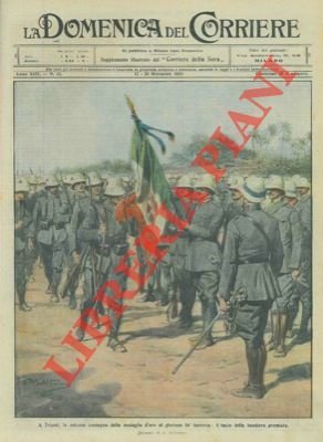 Medaglia d'oro all'84° Fanteria a Tripoli: bacio della bandiera premiata.