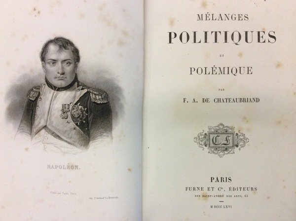In-8 p., mz. marocchino coevo, dorso a cordoni con titolo oro, pp. (4),714, con un ritratto di Napoleone inc. su rame. Vol. XI delle "Oeuvres complètes". Con qualche fiorit. interc. nel testo, altrimenti buon esemplare.