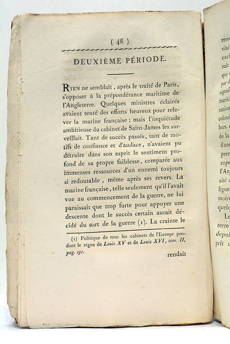 2 feuillets. 243 pages. (21,5x14 Cm). Broché. Couverture semi-rigide de l'époque. Dos un peu fendillé avec de petits manques. Ouvrage de politique internationale écrit par un collaborateur du ministère des Affaires Etrangères, et contenant de nombreuses considérations sur les Etats-Unis d'Amérique. L'examen de ses caractères permet d'attribuer son exécution aux presses de l'Imprimerie Impériale. Bon exemplaire, à part quelques petites taches et traces d'humidité.