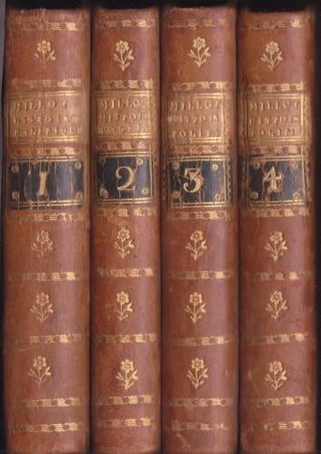 in 12° (cm 16x10), pp. xxvj, 499; 388; 426; 447; leg. coeva m/pelle con angoli, tit. in oro su tass. e fregi ai ds., tagli spruzz., alcune testatine. In queste memorie il Duca di Noailles, Maresciallo di Francia e Ministro, riporta integralmente alcune annotazioni di Luigi XIV scritte durante il suo regno, oltre a m. documenti curiosi. Esemplare fresco con rare fior., qc. lieve abrasione alle leg. 643/22