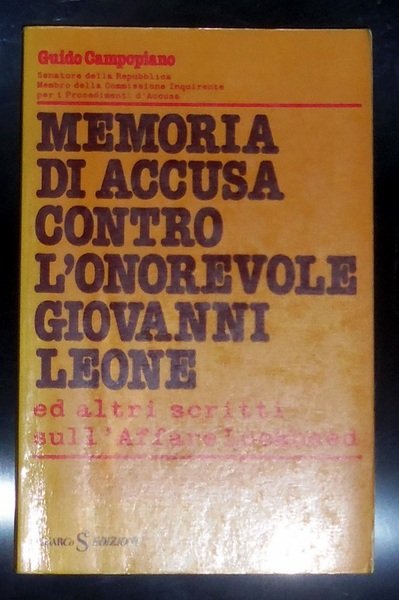 - Memoria di accusa contro l'onorevole Giovanni Leone Lockheed, politica storia campopiano