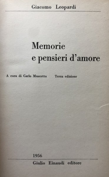 MEMORIE E PENSIERI D'AMORE. A CURA DI CARLO MUSCETTA | Libros antiguos y modernos | Giacomo Leopardi