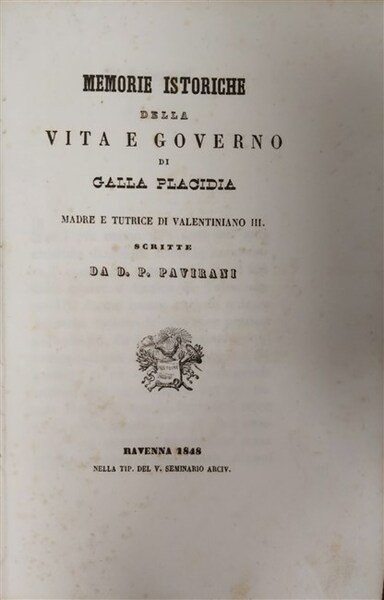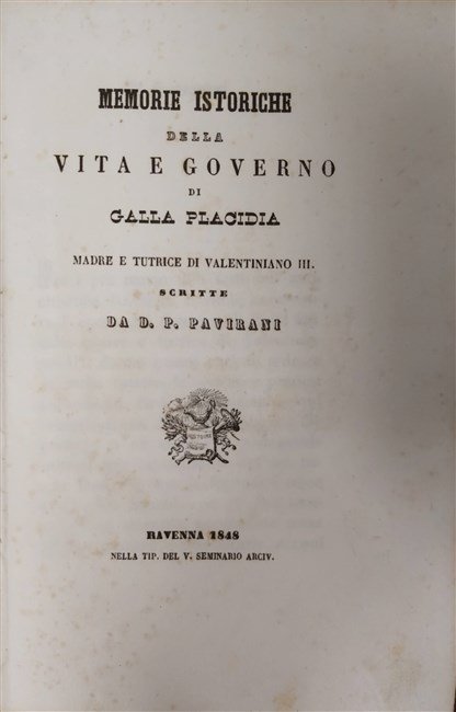 MEMORIE ISTORICHE della vita e governo di Galla Placidia madre e tutrice di Valentiniano III.