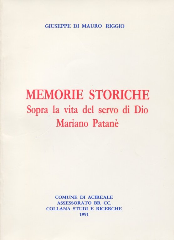 Memorie storiche sopra la vita del servo di Dio Mariano Patanè