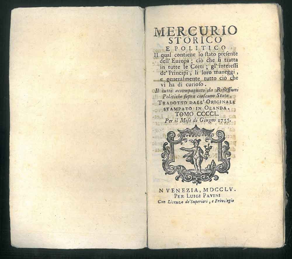 Mercurio storico e politico il quale contiene lo stato presente dell'Europa; Riflessioni politiche sopra ciascuno Stato. Tomo 450, per il mese di giugno 1755.