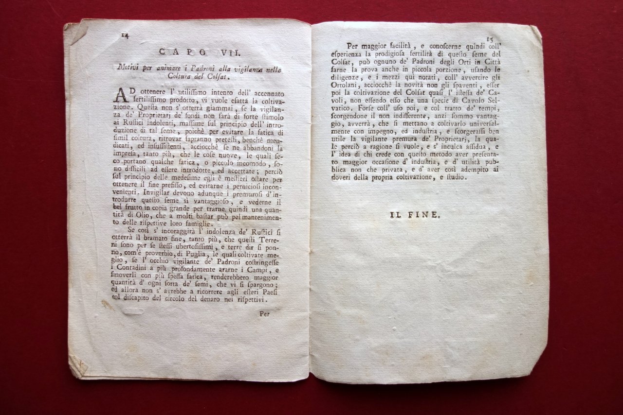 Metodo per Seminare e Coltivare il Seme di Colsat Gaetano Pratesi Modena 1777