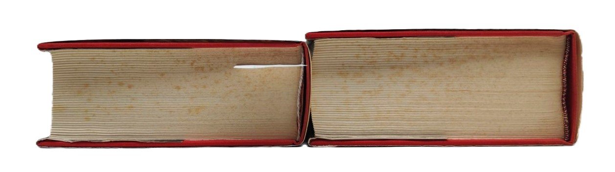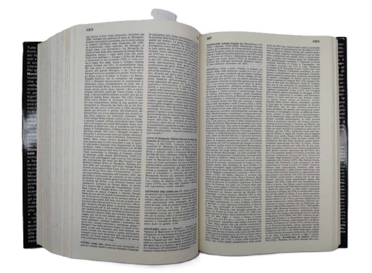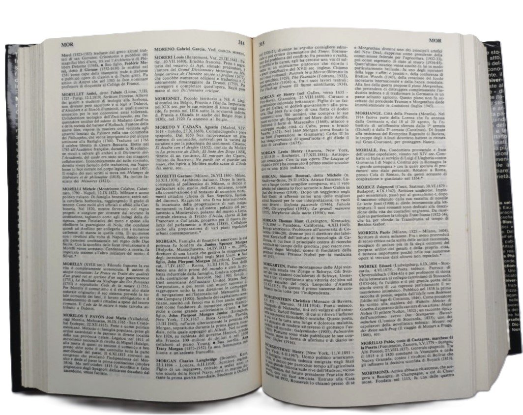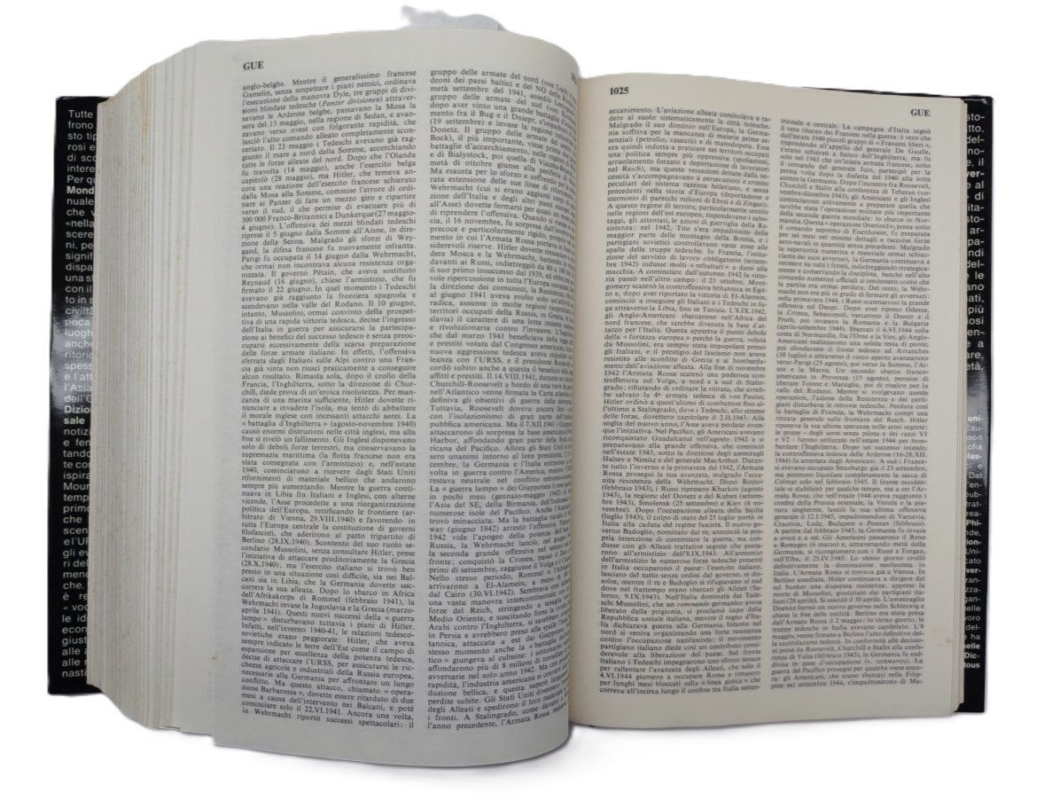 cofanetto rigido editoriale con una rottura al margine superiore di cm 17,5, fioriture e alcune sporcizie al margine interno, alcune sporcizie anche ai piatti e al dorso, sovraccoperta editoriale ai due volumi leggermente ingiallita al dorso, lievi segni di usura, legatura rigida in tela rossa con titolo al piatto anteriore e al dorso, tagli con fioriture diffuse, vedere immagini, una rottura alla cuffia al margine superiore del primo volume, testo su due colonne, numero pagine 1217 +1367 secondo volume fioritura i tagli, dimensioni cm 25,5 * 17,5 * 14,5