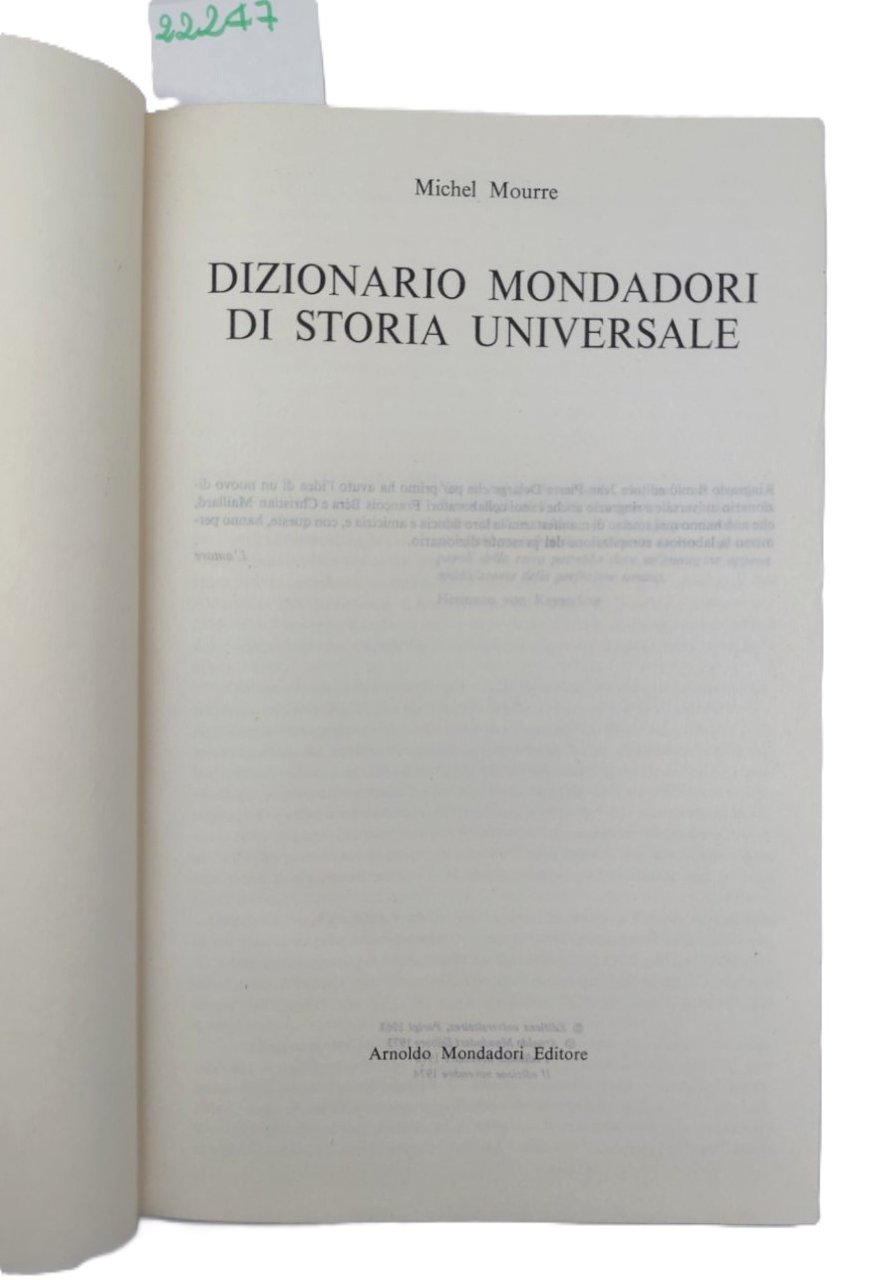Michelle Morre Dizionario Mondadori di storia universale 2 volumi 2° edizione 1974