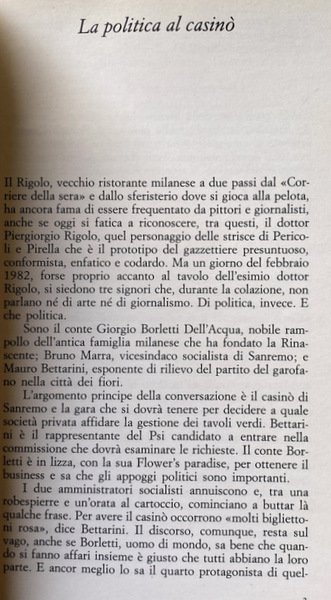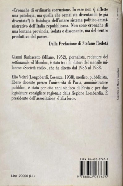 Soggetti: Politica, Società, Scienze sociali, Codelfa, Icomec, Amnu, Milano, Amsa, Corruzione, Ligresti, Anni Ottanta, Anni Novanta, Prima Repubblica, Economia, Scandali economici, Potere, Partiti politici, Finanza, Finanziamento pubblico, Militanti, Mazzette metropolitane, Tangenti, Appalti, Rifiuti d'oro, Riciclaggio, Politica milanese, Cronache, Giornalismo, Inchieste, Reportage, Sistema politico-amministrativo, Giustizia, Processi, Speculazione, Magistratura, PDS, PCI, DC, PSI, Classe dirigente, Imprenditoria, Affari, Affaristi, Costruttori, Illeciti, Burocrazia, Mass Media, Informazione, Mauro Bettarini, Moratti, Borletti, Garofano, Clan, Criminalità, Assicurazioni, Metropolitana, Casinò, Licio Gelli, P2, Crack Ambrosiano, Gangi, Mani sulla città, Palazzinari, Ligresti, De Angelis, Dossier, Valtellina, AIDS, Ricostruzione, Irpinia, Terremoto, Abusi edilizi, Abusivismo, Lottizzazione, Partitocrazia, Milano da bere, Ristoranti, Clientelismo, Albergatori, Ricatti, Opere pubbliche, Verzè, Vitalone, Molinari, Pillitteri, Natali, Mottini, Prandini, Radice Fossati Confalonieri, Carlo Tognoli, Tabacci, Sattin, De Mita, Davigo, Gandus, Grisolia, Benetton, Berlusconi, Andreotti, Boccassini, Ciarrapico, Di Pietro, Cuccia, Prada, Ricotti, Libri Vintage Fuori catalogo, Saggistica, Attualità, Socialisti, Politics, Society, Social sciences, Milan, Corruption, Eighties, Nineties, First Republic, Economy, Economic scandals, Power, Political parties, Finance, Public funding, Militants, Metropolitan, Bribes, Tenders, Gold waste, Money laundering, Chronicles, Journalism, Investigations, Political-administrative system, Justice, Processes, Speculation, Judiciary, Ruling class, Entrepreneurship, Business, Businessmen, Builders, Illicit, Bureaucracy, Information, Carnation, Crime, Insurance, Underground, Casino, Hands on the city, Reconstruction, Earthquake, Building abuse, Unauthorized, Parcelling out, Partitocracy, Milan to drink, Restaurants, Clientelism, Hoteliers, Blackmail, Public works, Out of print books, Non-fiction, Current affairs, Socialists