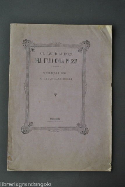 Vedere la descrizione dettagliata Sul caso d'Alleanza dell'Italia colla Prussia" Osservazioni di Carlo Zanichelli Tipografia Daolio, Reggio Emilia 1873; 29x20,5 cm; pp. 16. Brossura ed. Condizioni di conservazione Opuscolo in buono stato di conservazione con leggere tracce del tempo. Minime abrasioni e spacchetti a margini ed angoli. Pieghette. Leggere bruniture.Raro opuscolo sulla ipotetica alleanza Italo-prussiana. Per altri volumi e documenti su questo e altri argomenti visitate il nostro negozio "Libreria Grandangolo" Data l'importanza delle 5 stelle rilasciate durante l'assegnazione del feedback, invitiamo tutti gli acqirenti, se soddisfatti del loro acquisto, a rilasciare tutte le 5 stelle. La mancanza anche solo di una stella illuminata è molto lesiva per noi venditori professionali. Grazie! CONDIZIONI DI VENDITA Spedizione Fino a 5 kg piego di libri raccomandato, oltre i 5 kg pacco postale. Si ricorda che l'imballo viene eseguito con la massima cura. La merce viene spedita a pagamento avvenuto e viaggia a rischio e pericolo dell'acquirente. Per maggiori informazioni vedi la pagina SPEDIZIONI del nostro negozio. Ritiro diretto Siamo disponibili per il ritiro diretto a Modena e a Milano. Per gli indirizzi delle sedi vedi la pagina DOVE SIAMO del nostro negozio. Acquisti multipli Se si acquistano più libri, la spedizione si paga una sola volta, purché si rispettino gli scaglioni di peso. Estero / Foreign For international shipment, please contact us. Metodo di pagamento Pay Pal, bonifico bancario, versamento postale (cc/p, vaglia o altro). La spedizione avverrà entro i primi 4 giorni lavorativi dopo la conferma di avvenuto pagamento. Si emette ricevuta fiscale e a richiesta fattura. Il pagamento deve essere effettuato entro 7 giorni lavorativi dalla data di acquisto, trascorsi i quali l'oggetto sarà rimesso in vendita. Feedback Viene rilasciato dall'acquirente dopo il ricevimento di quanto acquistato. Data la sua importanza, vi invitiamo a leggere il breve testo della pagina FEEDBACK del nostro negozio. Pertanto, in caso di qualsiasi problema, non esitate a contattarci. Diritto di recesso L'acquirente ha il diritto di restituire l'oggetto entro 14 giorni ed essere rimborsato, escluse le spese di porto e imballo. L'oggetto deve essere restituito, dopo previa comunicazione, imballato e nelle medesime condizioni di come era all'origine. Creato da Turbo Lister Strumento gratuito per mettere in vendita i tuoi oggetti. Metti in vendita i tuoi oggetti in modo facile e veloce e gestisci le inserzioni in corso. "