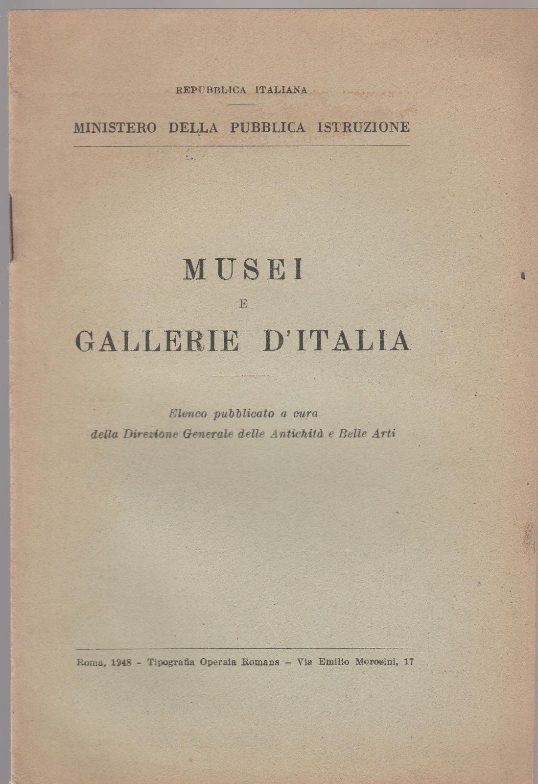 Ministero Della Pubblica Istruzione-Musei E Gallerie D'italia-1948 Tip. Op. Rom.