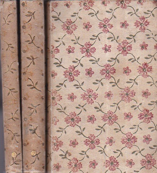 3 voll. in-8° (200x122mm) in bella cartonatura a decori floreali e vegetali intrecciati impressi in verde ed in rosa contenenti, nel complesso, 15 commedie francesi pubblicate a Parigi (tranne una edita ad Amsterdam) negli anni compresi fra il 1774 e il 1781. Eccellente esemplare. Comprende: 1) Molière, L'Avare, comédie en cinq actes et en prose. Représentée pour la premiere fois à Paris, sur le Théâtre du Palais Royal, le 9 du mois de Septembre 1668. A Paris, chez Ruault, 1778, pp. 80. 2) Jean François Regnard, Les Menechmes, ou les Jumeaux, comédie en cinq actes en vers. Nouvelle édition. A Paris, chez Ruault, 1777, pp. 60. 3) Jean Antoine Romagnesi, Samson, mis en vers en cinq actes, représenté pour la premiere fois par les Comédiens Italiens ordinaires de Sa Majesté, sur le Théâtre de l'Hôtel de Bourgogne. Nouvelle édition. A Paris, chez Didot, 1778, pp. 52. 4) Alain René Le Sage, Turcaret. Comédie en cinq actes, et en prose. Nouvelle édition. A Paris, chez Ruault, 1777, pp. 76. 5) Jean François Regnard, Le Distrait, comédie en cinq actes et en vers. Nouvelle édition. A Paris, chez Didot, 1778, pp. 68. 6) Molière, Le Bourgeois Gentilhomme, comédie-ballet en cinq actes, et en prose. Représentée par les Comédiens François, le 23 Novembre 1670. Nouvelle édition. A Paris, chez Didot, 1778, pp. 90. 7) Louis de Boissy, Les dehors trompeurs, ou l'homme du jour, comédie en cinq actes et en vers. Représentée pour la premiere fois, sur le Théâtre de la Comédie Françoise, le 18 Février 1740. Nouvelle édition. A Paris, chez Ruault, 1777, pp. 72. 8) Marc Antoine Jacques Rochon de Chabannes, Les amans généreux, comédie et en cinq actes et en prose; imitée de l'allemand. Représentée, pour la premiere fois, par les Comédiens ordinaires du Roi, le Jeudi 13 Octobre 1774. A Amsterdam, chez Jean Neaulme, 1774, pp. 68. 9) Denis Diderot, Le père de famille, comédie en cinq actes et en prose. Nouvelle édition. A Paris, chez Delalain, 1777, pp. 56. 10) Michel Jean Sedaine, Le philosophe sans le savoir, comedie en cinq actes, et en prose. Représentée par les Comédiens François Ordinaires du Roi, le 2 Novembre 1765. Nouvelle édition. A Paris, chez Didot, 1778, pp. 56. 11) (André Ernest Modeste Grétry - Alexandre Frédéric Jacques de Masson Pezay), La Rosière de Salenci, pastorale en trois actes mélée d'ariettes. Représentée pour la première fois par les Comédiens Italiens ordinaires du Roi, le Lundi 28 Février 1774. Nouvelle édition. A Paris, chez Didot, 1781, pp. 40. 12) (Jean Gaspard Dubois-Fontanelle), Éricie ou la Vestale, drame en trois actes et en vers. Nouvelle édition. A Paris, chez Ruault, 1778, pp. 51. 13) Alexandre-Guillaume Mouslier de Moissy, Le Valet Maître, comedie en trois actes en vers. Représentée pour la premiere fois par les Comédiens François, le 6 Octobre 1751. A Avignon, chez Louis Chambeau, 1769, pp. 52. 14) Pierre de Marivaux, Les fausses confidences, comedie en trois actes, et en prose. Nouvelle édition. A Paris, chez Didot, 1778, pp. 70, (2). 15) (Claude Henri de Fusée de Voisenon), La coquette fixée, comédie en trois actes, et en vers. Avec un divertissement. Représentée pour la premiere fois par les Comédiens Italiens ordinaires du Roi. Nouvelle edition. A Paris, chez Didot, 1778, pp. 60.