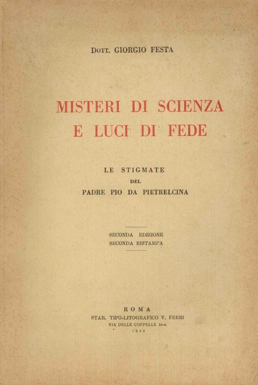 Misteri di scienza e luci di fede. Le STIGMATE del PADRE PIO da PIETRELCINA. 2.a edizione, 2.a ristampa.