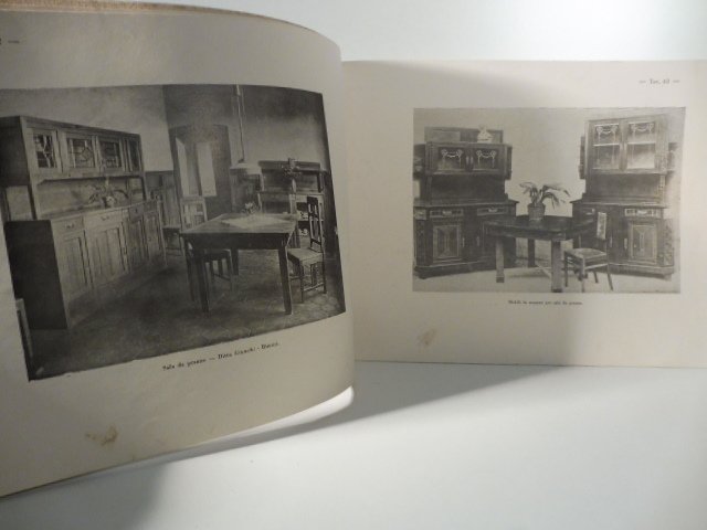 In 8 oblungo, con 140 tavole con illustrazioni in bianco/nero. Danni riparati al dorso. Qualche segno di ruggine al margine interno dovuto ai punti metallici. Brossura editoriale. Catalogo completamente illustrato con ampia selezione di mobili da salotto e camere da letto dell'artigianato italiano. Le tavole illustrate recano nella maggior parte dei casi il nome della ditta produttrice. Catalogo non datato ma ascrivibile agli anni Quaranta.