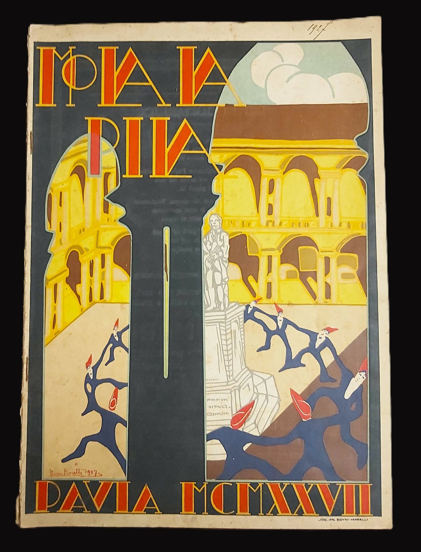 in folio, pp. (4), 60, (4), bross. edit. con splendida copertina cromolitogr. di Pino Pinetti, artista locale autore anche di manifesti d'epoca. Con 2 tavv. su carta patinata di Pino Pinetti e numerose ill. n.t. Rivista goliardica degli Universitari di Pavia, molto rara, con scritti di Rindo Villa, Milo da Mariana, Giannetto Bongiovanni, Franco Alfonso Penna, Gino Cornali, Limonetto, Maso Bisi e altri. [526]