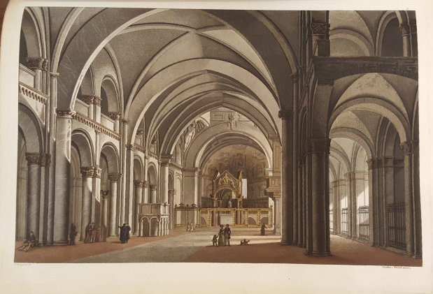 >in-4 gr. (mm.385 x 265), pp. (8), 224, leg. mod. m. tela, titolo in oro su tassello al dorso. Astuccio. Con vingetta sul tit. e 32 tav. (la IV è duplice) f.t. inc. in seppia e miniate a pennello, disegnate ed incise da vari artisti, tra cui Sanquirico, Bussi, Bonatti, Raineri, raffiguranti nell'insieme e nei particolari architettonici ed artistico-decorativi l'antica celebre basilica del patrono di Milano. L'opera apparve anche in tiratura economica con le tav. in nero. Esempl. magnifico a pieni margini della tiratura di lusso con le tavole mirabilmente miniate. Predari 107. Cat. Hoepli 1248. Cat. Meneghina 453. Brunet II, 1233.
