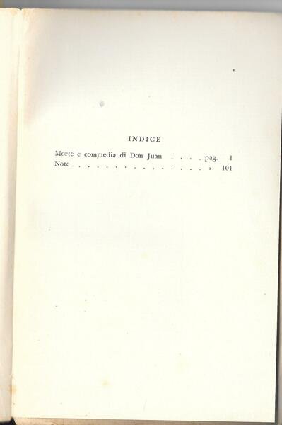 in 8°, pp. 129, bross. edit., carta vergata L'A. esamina i motivi per cui il personaggio creato da Tirso de Molina e ripreso da Molière, sia un personaggio da commedia anziché da tragedia. Ombreggiature e fior. alla bross. 371/38