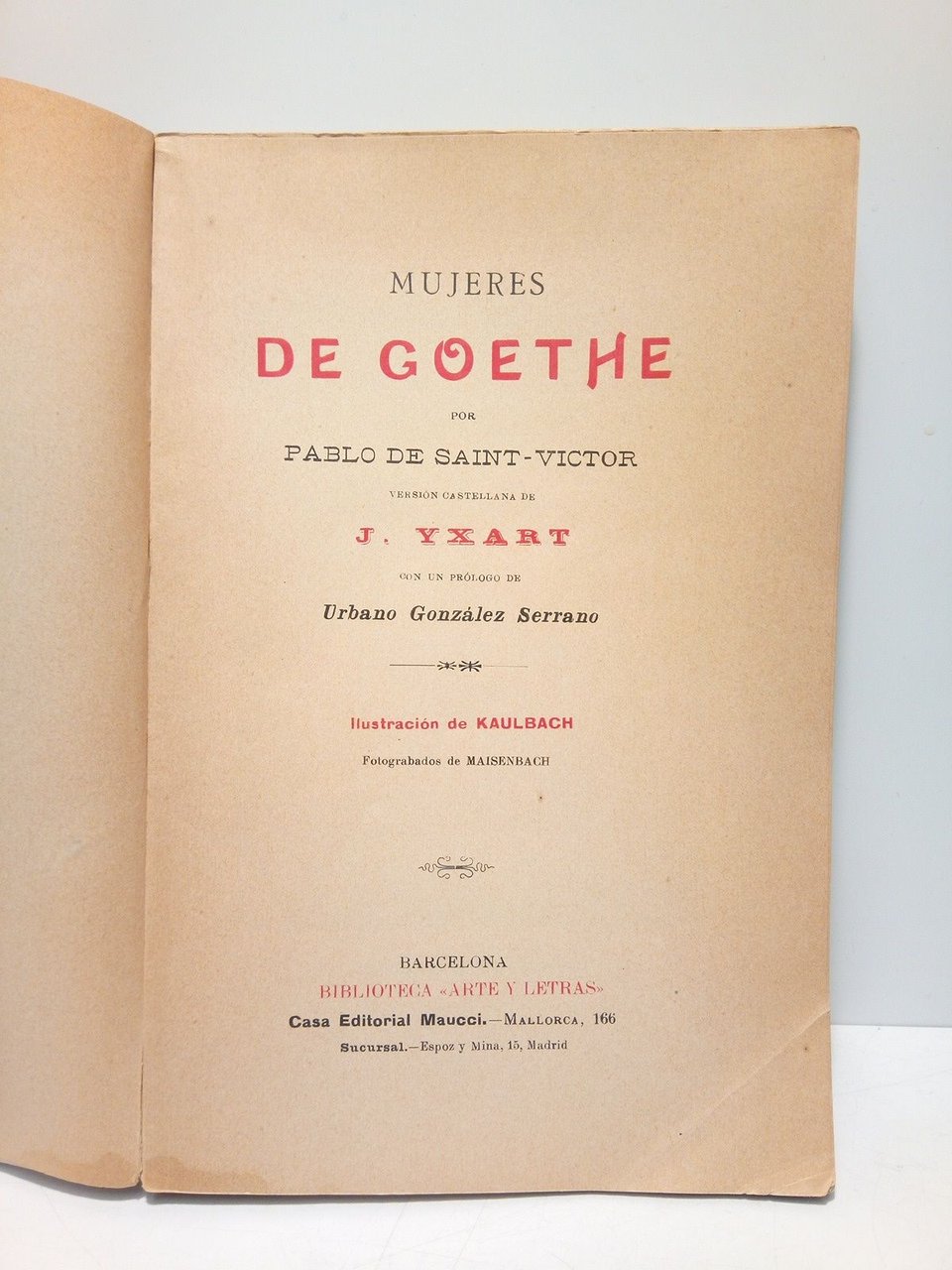 Mujeres de Goethe / Versión castellana de J. Yxart; prol. de Urbano González Serrano; ilustraciones de Kaulbach; fotograbados de Maisenbach
