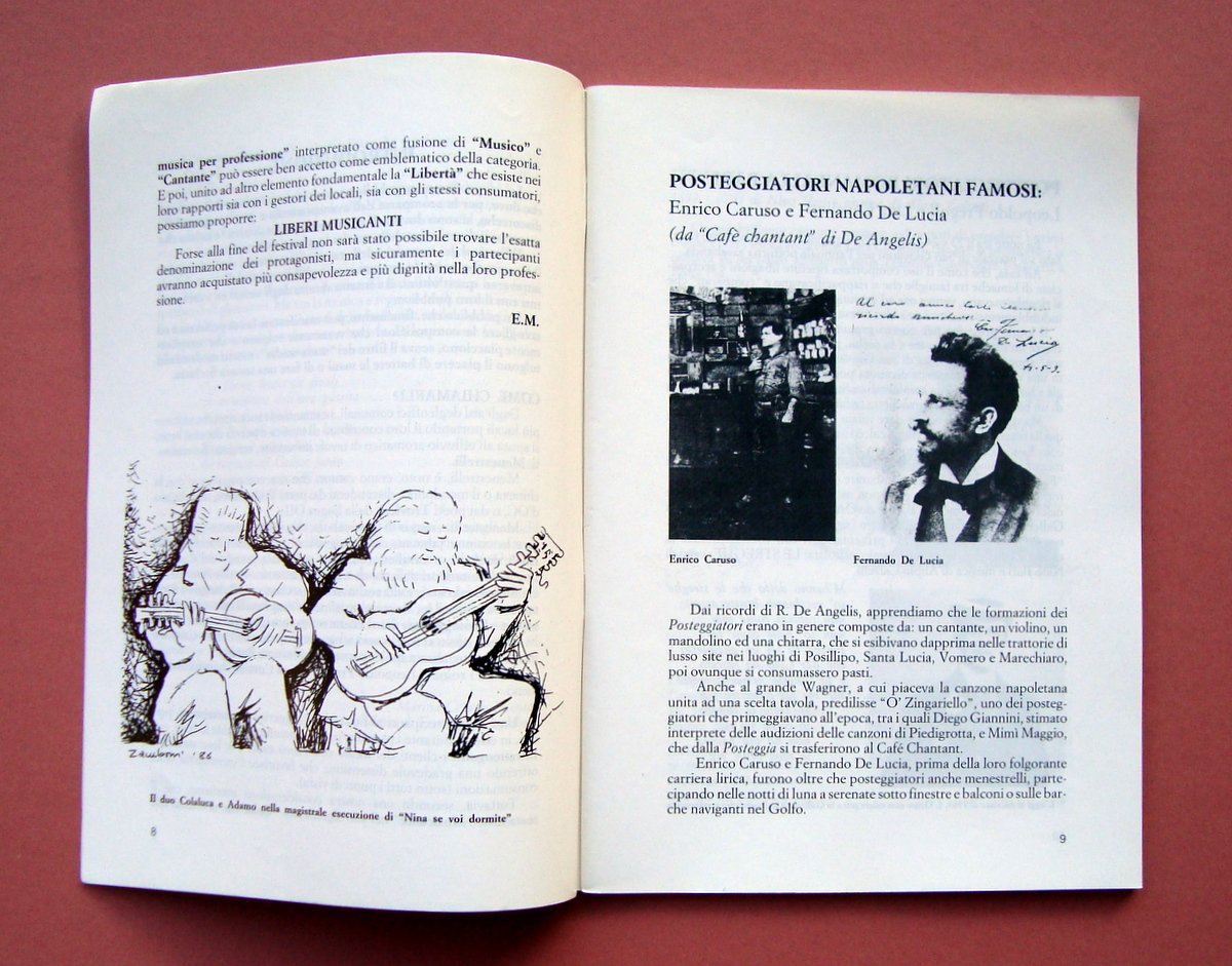Libretto, Musica a Tavola Festival dei Cantanti e delle Canzoni in Trattoria Ediz. Michelmax, Roma, 1988; cm 24x17; pp. 62; opuscolo + 24 pagine centrali con spartiti stampati su carta gialla; br. ed. ill. b/n.con disegni e illustrazioni in bianco e nero Condizioni di conservazione Esemplare molto buono con minime, trascurabili tracce d'uso. OPEB.5872 blu