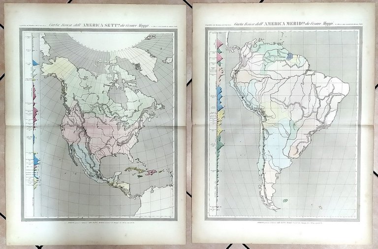 N. 2 CARTE FISICHE DELL'AMERICA SETTENTRIONALE e DELL'AMERICA MERIDIONALE