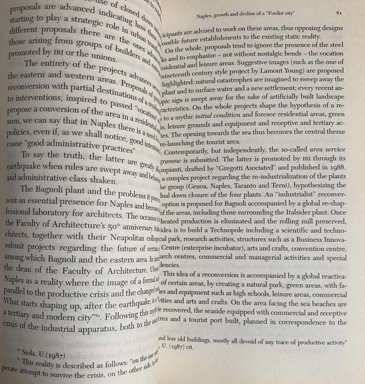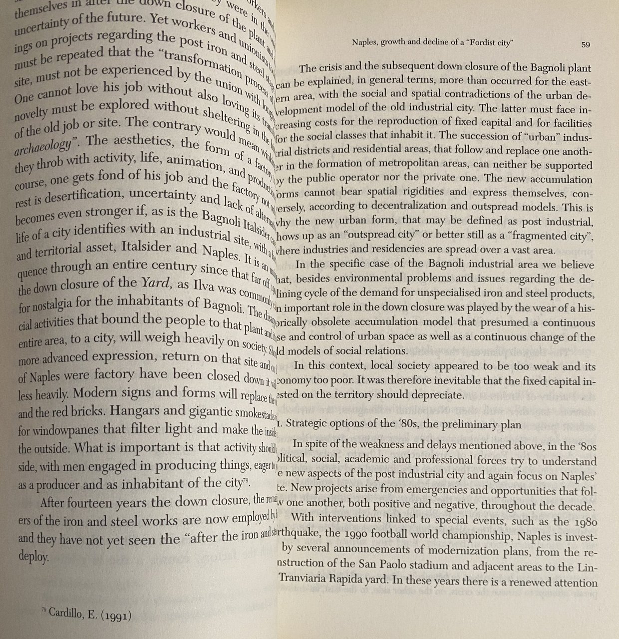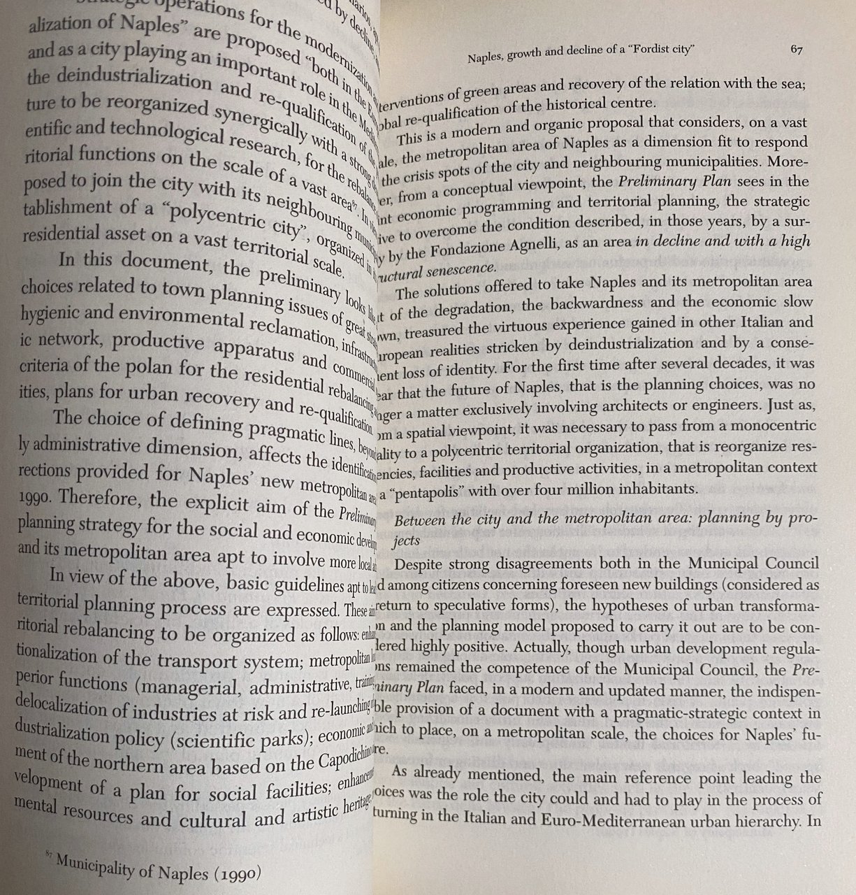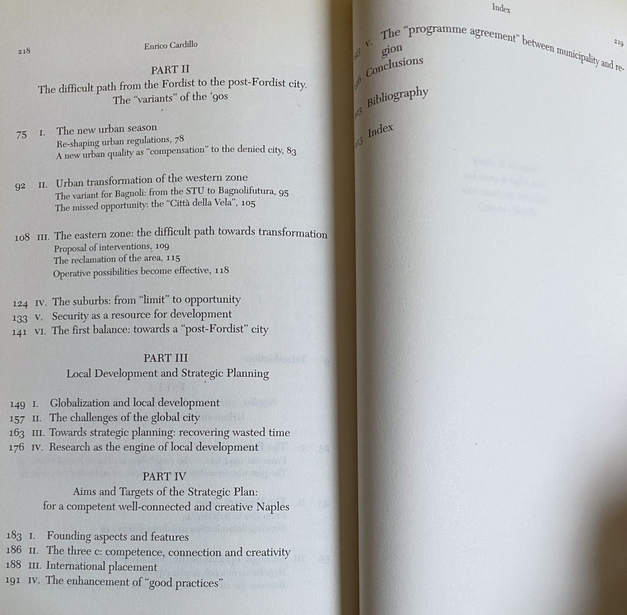 Soggetti: Architettura Urbanistica Transizione Napoli Città industriali Post-industriale Piano strategico regolatore Industrializzazione Deindustrializzazione Sfide urbanistiche Pianificazione urbana Piani regolatori Creatività Connessioni globali Post-fordismo Rete Mercato Dopoguerra Ricostruzione Abusivismo edilizio Abusi Edilizia Costruzioni Produzione Terziario Turismo Arte Cultura Connessione Connettività Trasporti Globalizzazione Strategia Quartieri Periferie Periferia Porto Merci Est Growth Decline Fordist city Earthquake Terremoto transformations Eastern Zone Law Industrial fabric Post war Reconstruction development Crisis Western Bagnoli Acciaieria Acciaio Bonifica Ilva Italsider Delocalizzazione Delocalization Closure Strategic options Anni Ottanta Plan Polycentric Metropolitan area Planning Projects Re-shaping Regulations Maurizio Valenzi Innovazione Quality Denied Cities STU to Bagnolifutura Opportunity Vela Transformation Proposal Interventions Suburbs Security Declino Crisi Sviluppo economico Mare Sea Sicurezza Balance Globalization Local Challenges Global Scienza Science Research Aims Targets Vompetent well-connected Creative Features Three Competence Connection Creativity International placement Hub Enhancement Good practices Venelli Fondazione Alisio Ambrosetti Studio Amirante Armani Report Barbagallo Barbieri Barracco Belfiore Belli Beneduce Borrelli Brancaccio Braucci Castronovo Cilento Dal Piaz Davis De Benedetti De Giovanni De Lucia De Masi De Nigris De Simone Dematteis Dente Derrida Discepolo Fermariello Flora Fofi Ford Friedmann Galasso Galgano Gaudin Giambarba Giddens Graziani Greco Gregotti Gribaudi Iervolino Russo Janin Rivolin Jobert Kooman La Falce Lauro Achille Lefebvre Lepore Lévi-Strauss Maggioni Marshall Mazzucca Moccia Morandi Musi Mustilli Nitti Petrone Piccinato Pignataro Ronchi Decreto Rosi Rossi Doria Russo Saraceno Savarese Schifano Servidio Sinigaglia Siola Storoni Rapporto Tammaro Tavlor Tognoli Legge Trigilia Bibliografia Libri rari fuori catalogo Saggi Collezionismo Consultazione Riferimento Sociologia Studi Culturali Proposte Amministrazione Sindaco Regione Ambientale Amministrazioni Antonio Bassolino Attività produttive Attrezzature Camorra Corruzione Capacità Centro storico Cittadini Competitività Comune Contesto Coppa America American's Cup Criminalità Gestione Governance Governo Impianti Imprenditoriali Imprese Infrastrutture Iniziative Investimenti Mezzogiorno Modello Napoletana Partecipazione Metropolitana Politiche Politica Residenziali Riconversione Riqualificazione Risorse Servizi Siderurgico Sindacati Sistema Società consortile Tangentopoli Polo Tecnologico Architecture Transition Naples Industrialization Deindustrialization Urban Master plans Post-Fordism Network Market Post-war Unauthorized building Abuses Construction Production Tertiary sector Tourism Art Culture Connectivity Transport Strategy Neighborhoods Port Freight Davies