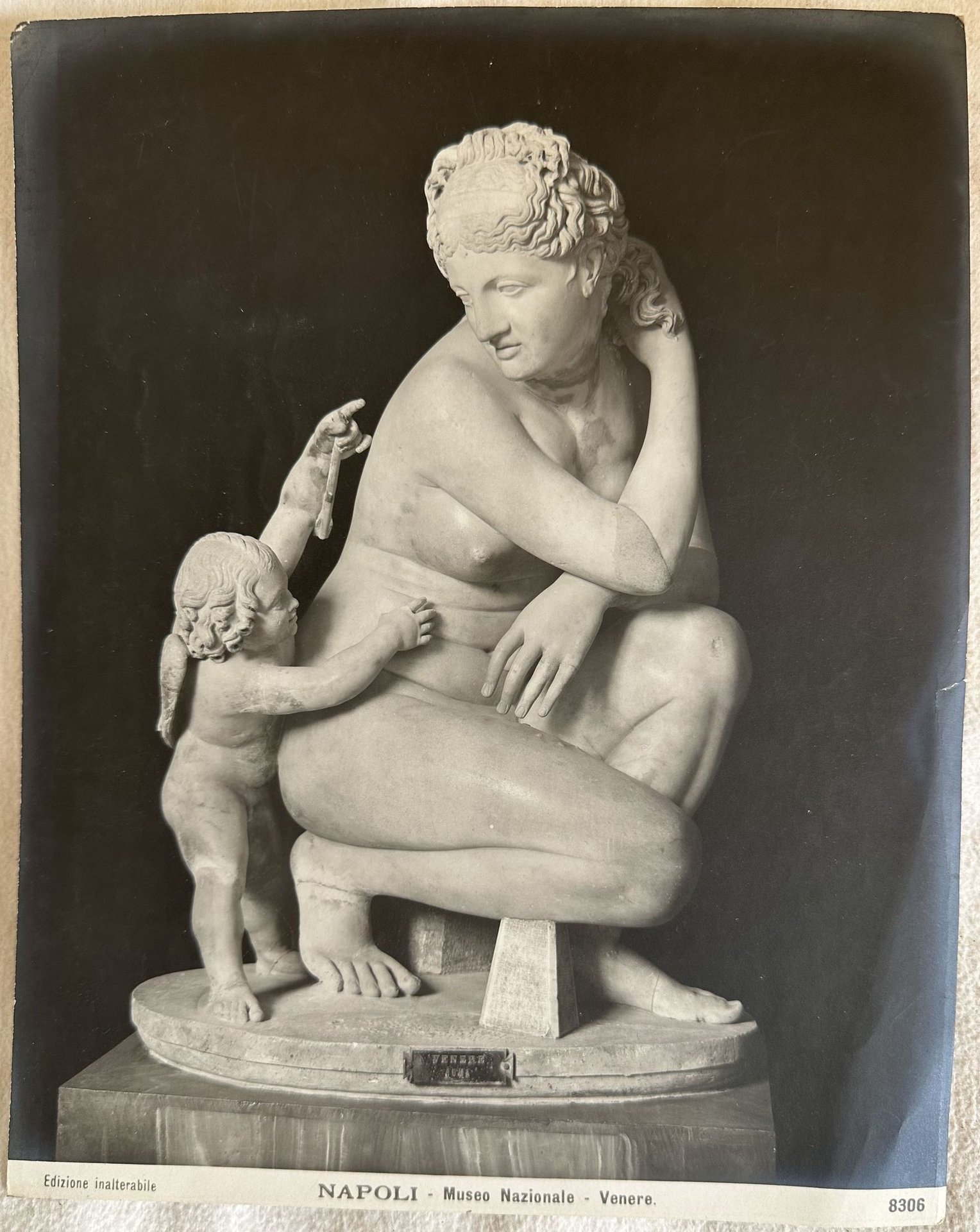 Bellissima foto in bianco e nero della fine dell'ottocento o inizi del novecento che mostra la statua della Venere presente al Museo Nazionale di Napoli. In buone condizioni. cm. 19,5x24,5.Very beautiful black and white photoes of late 19th century or early 20th century showing the statue of Venus in the National Museum of Naples In good conditions. In 4. cm. 19,5x24,5.
