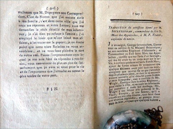 Naufrage et Aventures de M. Pierre Viaud, natif de Bordeaux, Capitaine de Navire. Histoire véritable, vérifiée sur l'attestation de M. Sevettenham, commandant le Fort de St. Marc , des Appalaches.