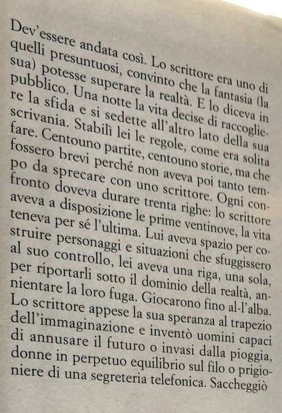 "Mai che la vita sia come un racconto. Mai che, se trovi le parole che cerchi, te le lasci mettere in fila e ricavarci un bel finale.".