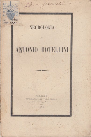 Necrologia Di Antonio Rotellini | Libros antiguos y modernos |