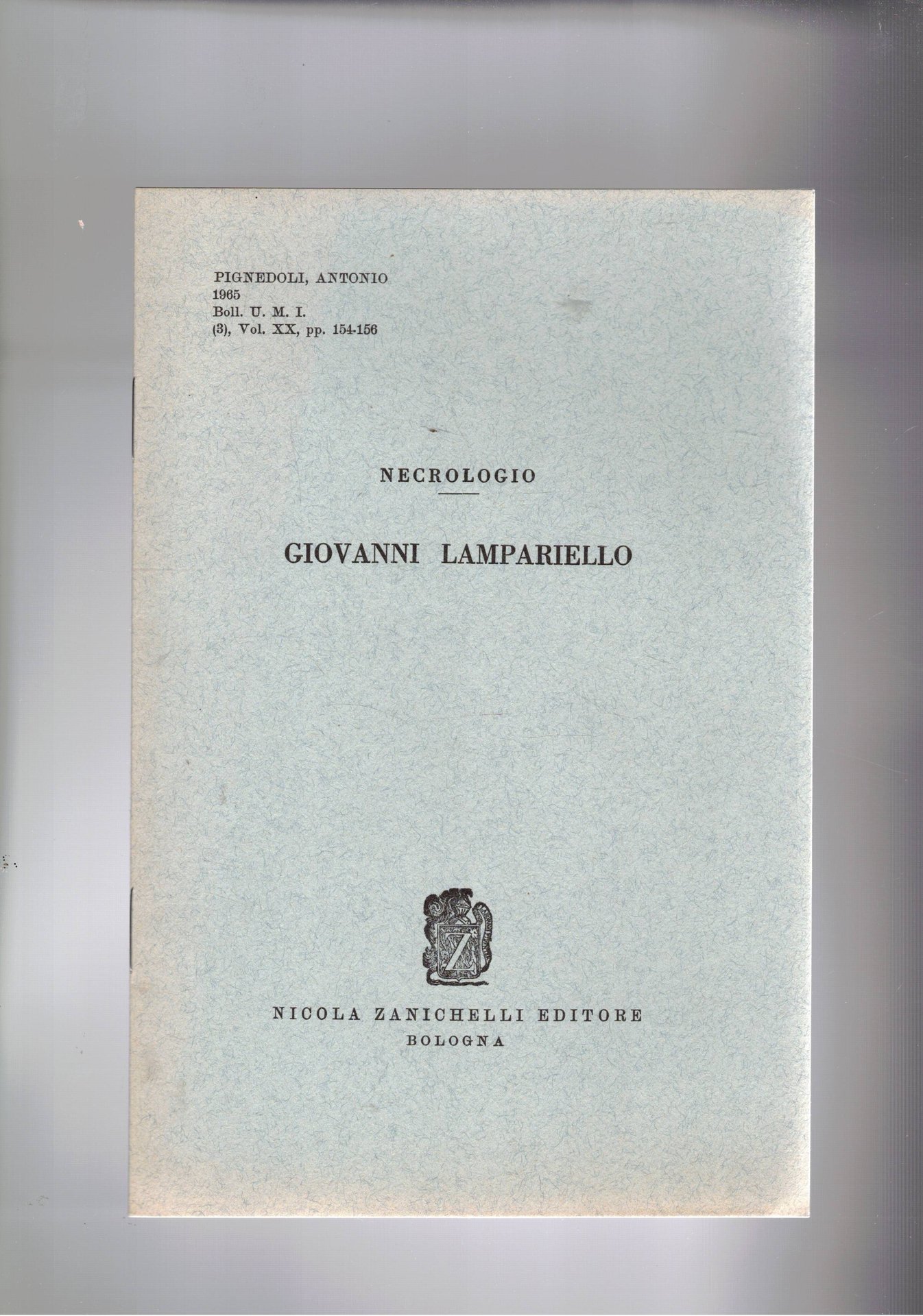 Necrologio di Giovanni Lampariello. | Libros antiguos y modernos | Pignedoli Antonio.