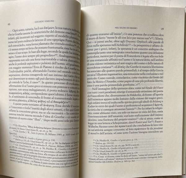 Soggetti: Filologia classica, Influssi, Erasmo da Rotterdam, Studi culturali, Umanesimo, Critica, Interpretazione, Filosofia, Rinascimento, Biografie, Umanisti, Germania, Germanistica, Idealismo, Religione, Grecisti, Greco antico, Studiosi, Intellettuali tedeschi, Callimaco, Poeti greci, Kallimachosstudien, Menschenbildung, Antibarbari, Wilamowitz, Chiesa, B. Mansfield, E. Norden, Cristianesimo, Protestantesimo, Kulturprotestantismus, Ellenismo, Classicismo, Traduttori, Traduzioni, Lingue elleniche, Erudizione, Eruditi, Antologie di scritti, Analisi, Testi antichi, Storia, Geografia, Poesia, Studi letterari, Letteratura antica, classica e medievale, Humanitas Bendectina, Conrad Peutinger, Rinascenza classica cristiana, Spiritualità, Spirito, Rinnovamento spirituale, Goethe, Wilhelm von Humboldt, Italia, Firenze, Toscana, Leon Battista Alberti, Agostino, Aristarco di Samotracia, Bachofen, Aristotele, C.O. Brink, Luciano Canfora, Beato Renano, Benedetto da Norcia, R. Bentley, Buhler, Bonifacio, Cassiodoro, Cicerone, Celtis, John Colet, Holderlin, Lachmann, Hegel, De Lubac, Marcello Gigante, Paul Maas, Marsilio Ficino, Eckermann, Desiderio, Eschilo, Filita di Cos, Ugo Grozio, Girolamo, Hegius, G. Hermann, Huizinga, Jaeger, Lehnus, Lloyd-Jones, Manuzio, Massimiliano d'Asburgo, Eduard Fraenkel, Filippo Melantone, Metternich, Tommaso Moro, Nietzsche, Omero, Orazio, Origene, Paolo Diacono, Paolo di Tarso, Francesco Petrarca, Pico della Mirandola, Platone, Plotino, Poggio Bracciolini, Psello, Angelo Poliziano, Saffo, Salmasius, G.G. Scaligero, Schleiermacher, Schiller, Seneca, Talete, Tucidide, Terenzio, Lorenzo Valla, Welcher, Virgilio, Winckelmann, Zwingli, Svizzera, Zweig, Zielinski, Opere generali, Saggistica, Bibliografia, Riferimento, Libri Vintage Fuori catalogo, Francia, Monachesimo, Benedettini, Zasio, Glareano, Lutero, Riforma, Bibbia, Declino culturale, Europa, Neoplatonismo fiorentino, Famiglia de' Medici, Mecenatismo culturale, Cortigiani, Costumi, Corruzione, Cattolicesimo, Cristianità, Unità, Calvinismo, Calvinisti, Protestanti, Devozione, Fede, Etica, Morale, Olanda, Paesi Bassi, Wolf, Geist, Idoli, Streben, Sehnsucht, Humanitat, Goethezeit, Jena, Genio greco, Daimon, Demoni, Eros, Dio, Caino, Utopia, Dieta di Worms, Pace di Augusta, Principi, Libertà religiosa, Confessioni, Eresie, Eretici, Condanne, Papato, Roma, Reichstag, Papa Paolo III, Concilio di Trento, Congregazioni religiose, Santo Stefano, Fugger, Passato, Curtius, Cinquecento, Natura alessandrina, Classical Philology, Influences, Erasmus of Rotterdam, Cultural Studies, Humanism, Criticism, Interpretation, Philosophy, Renaissance, Biographies, Humanists, Germany, Germanistics, Idealism, Religion, Greekists, Ancient Greek, Scholars, Intellectuals, Callimachus, Greek poets, Antibarbarians, Church, Christianity, Protestantism, Hellenism, Classicism, Translators, Translations, Hellenic languages, Erudition, Erudites, Anthologies writings, Analysis, Ancient texts, History, Geography, Poetry, Literary studies, Ancient, classical and medieval literature, Classical Christian Renaissance, Spirituality, Spirit, Spiritual renewal, Italy, Florence, Tuscany, Augustine, Aristarchus of Samothrace, Aristotle, Cicero, Aeschylus, Grotius, Manutiio, Massimiliano d 'Habsburg, Philip Melanchthon, Thomas More, Homer, Horace, Origen, Paul the Deacon, Paul of Tarsus, Petrarch, Plato, Plotinus, Sappho, Thales, Thucydides, Terentius, Virgil, Switzerland, General works, Non-fiction, Bibliography, Reference, Out of print books, France, Monasticism, Benedictines, Luther, Reform, Bible, Cultural decline, Europe, Florentine neoplatonism, Medici family, Cultural patronage, Courtiers, Costumes, Corruption, Catholicism, Christianity, Unity, Calvinism, Calvinists, Protestants, Devotion, Faith, Ethics, Morals, Holland, Netherlands, Idols, Streben, Greek genius, Demons, God, Cain, Peace, Princes, Religious freedom, Confessions, Heretics, Heretics, Condemnations, Papacy, Rome, Pope Paul III, Council, Religious congregations, Past, Curtius, 16th century, Alexandrian nature